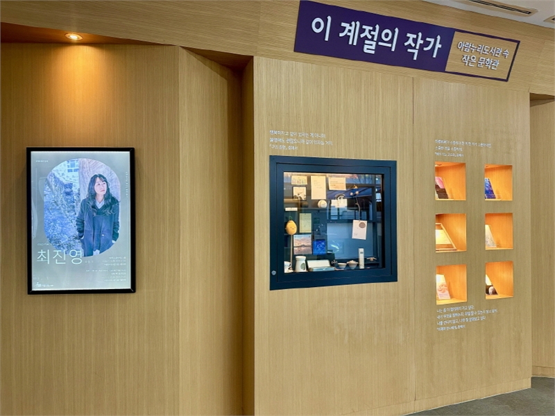 아람누리도서관, ‘이 계절의 작가’ 최진영 작가 편 운영고양특례시 아람누리도서관은 11월 4일부터 12월 31일까지 ‘이 계절의 작가’ 최진영 작가 편 전시 및 프로그램을 운영한다. ‘이 계절의 작가’는 분기별(계절별)로 문학 작가 1인을 선정해 작가의 작품, 소장품을 전시하는 전시 코너, 강연·북토크 등 다양한 방식으로