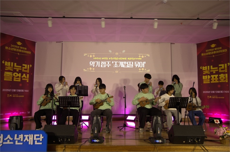 (재)파주시청소년재단 파주시청소년수련관은 지난 13일 ‘제15회 청소년방과후아카데미 ‘빛누리’ 졸업식을 개최했다고 밝혔다.이날 행사에는 청소년, 학부모, 지역 관계자들이 참석해 학생들의 졸업을 축하했다. 1년간의 활동을 담은 영상 시청을 시작으로 1학년의 송사와 2학년의 답사가 이어졌다. 또한, ‘청소년방과후아카데미’