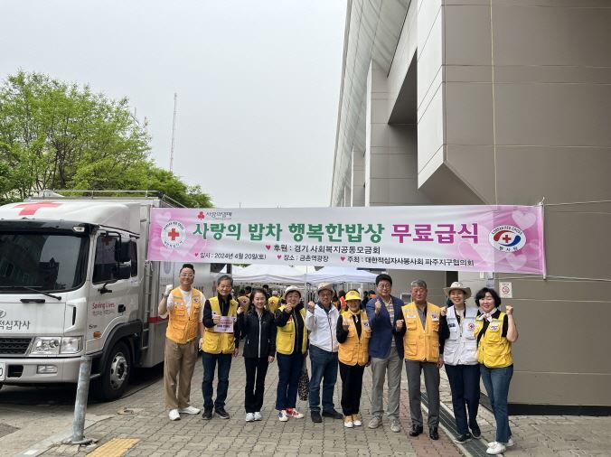 대한적십자사 봉사회 파주지구협의회가 4월 20일 금촌역 광장에서 어르신들을 대상으로 ‘사랑의 밥차’ 무료 급식 나눔을 진행했다.