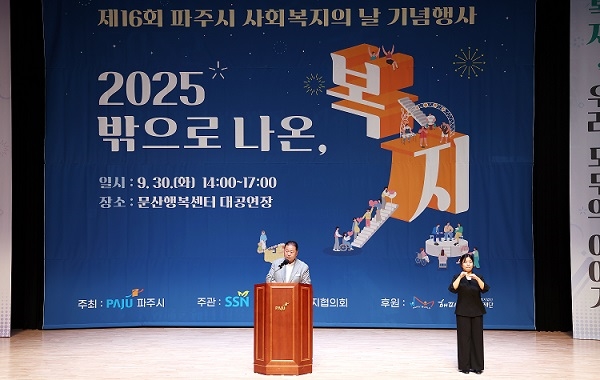 파주시는 지난 30일 문산행복센터 대공연장에서 복지의 의미를 시민과 함께 되새기고 지역 사회와의 소통을 넓히기 위해 ‘2025년 파주시 사회복지의 날 기념행사’를 개최했다.