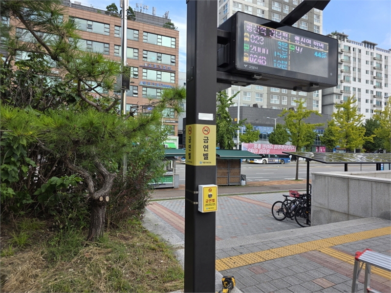 흡연자 발견 시 누구나 금연벨을 눌러 금연구역임을 알릴 수 있으며, 흡연자가 많은 시간대에는 20분 주기로 안내 방송이 자동 송출되도록 해 설치 효과를 극대화했다.
