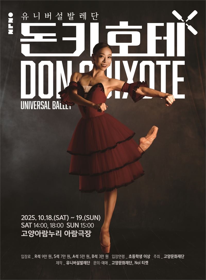 (재)고양문화재단은 유니버설발레단의 고전발레 명작 〈돈키호테 Don Quixote〉를 오는 10월 18일~19일 고양아람누리 아람극장에서 선보인다. 2년 만에 다시 무대에 오르는 유니버설발레단의 〈돈키호테〉는 올해 오직 고양에서만 만날 수 있는 단독 공연이다.