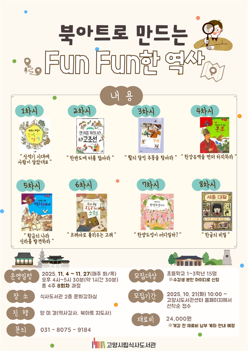 식사도서관은 오는 11월 4일부터 공공도서관 어린이 독서문화 프로그램 ‘북아트로 만드는 FunFun한 역사’를 운영한다.