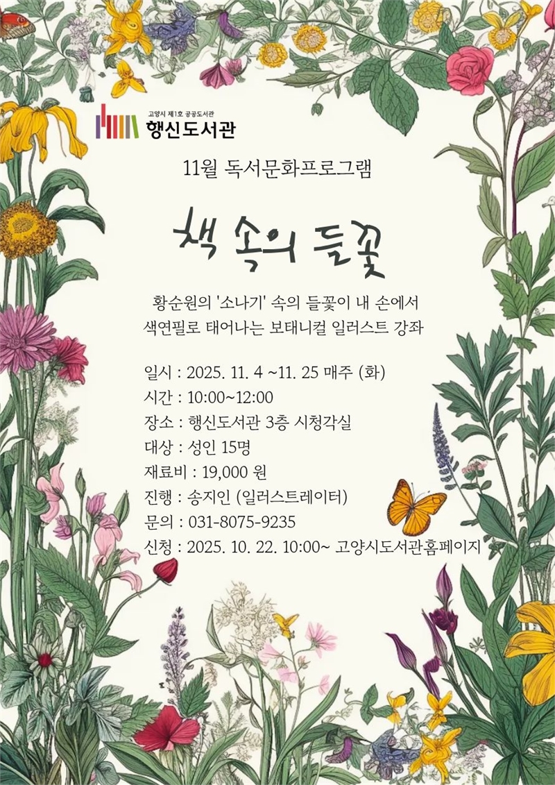 행신도서관, 11월 독서문화프로그램 ‘책 속의 들꽃’ 운영