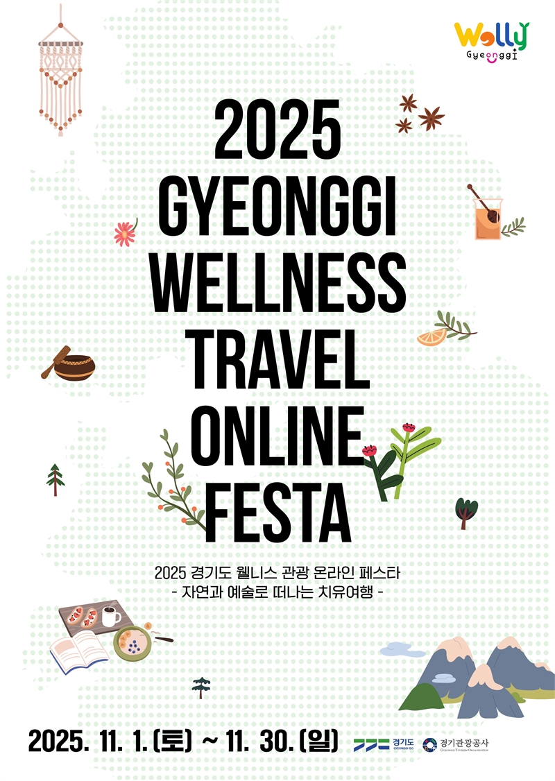 경기도와 경기관광공사가 11월 1일부터 30일까지 한 달간 도내 웰니스 관광지 9곳에서 최대 6만 원의 할인 혜택을 받을 수 있는 ‘2025 경기도 웰니스 관광 온라인 페스타’를 진행한다.