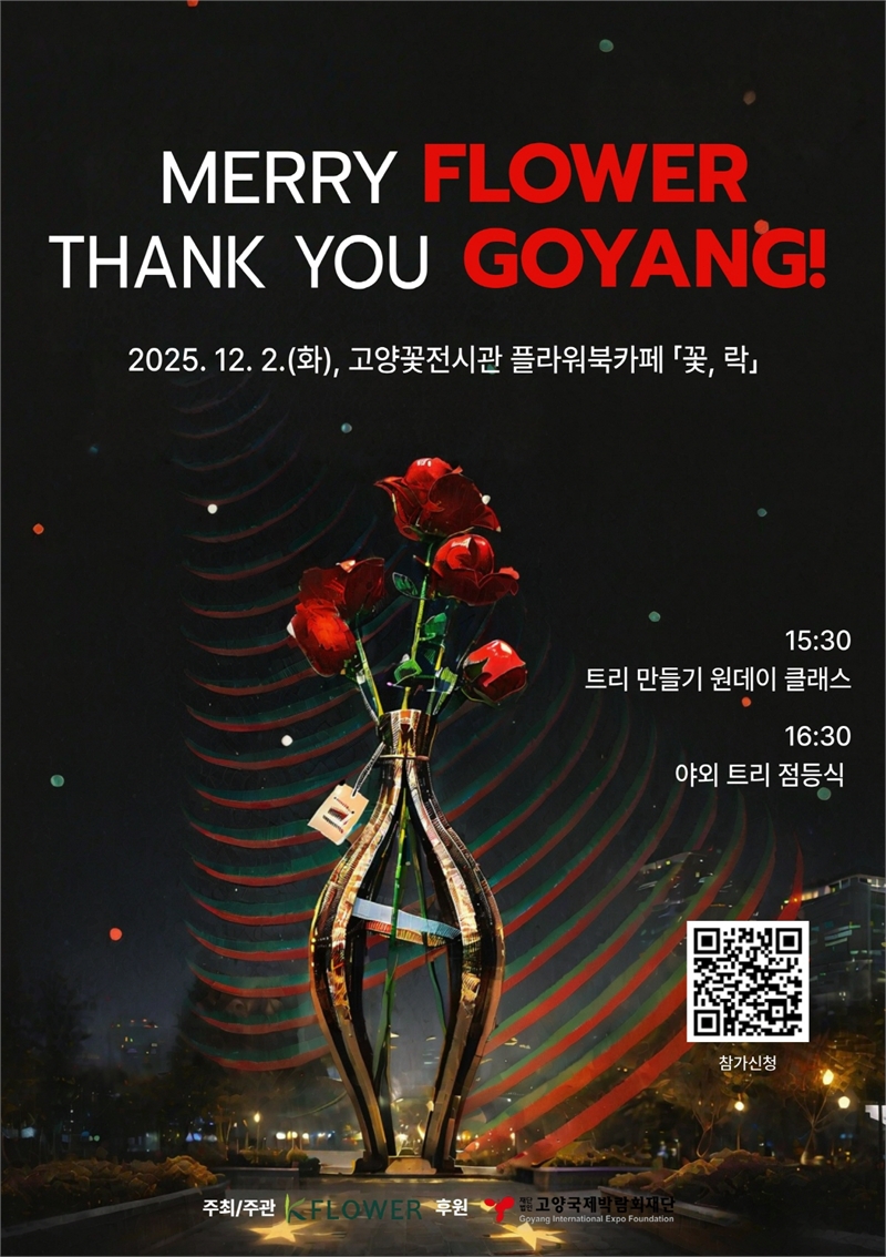 2025년 한 해 꽃을 사랑해 준 고양시민들에게 감사한 마음을 전하는 화훼 문화행사 ‘메리 플라워, 땡큐 고양!(Merry Flower, Thank you GOYANG!)’이 오는 12월 2일 고양꽃전시관 (플라워북카페)에서 개최된다.