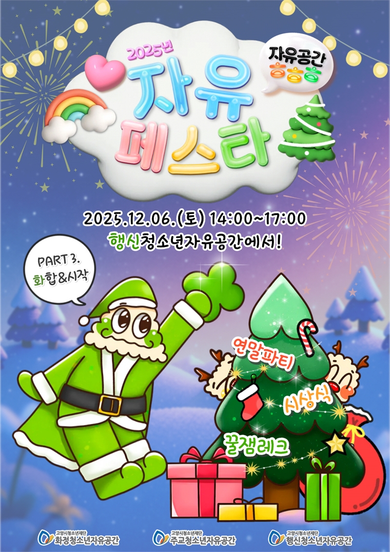 고양시청소년재단은 청소년자유공간 엽합축제 ‘자유페스타’를 오는 12월 6일 행신청소년자유공간에서 개최한다고 밝혔다.