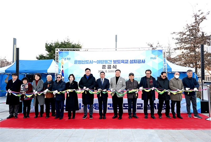 파주시는 지난 3일, 운정호수공원과 야당동을 연결하는 ‘운정신도시~야당동 간 보도육교 설치 공사’를 완료하고 준공식을 개최했다.