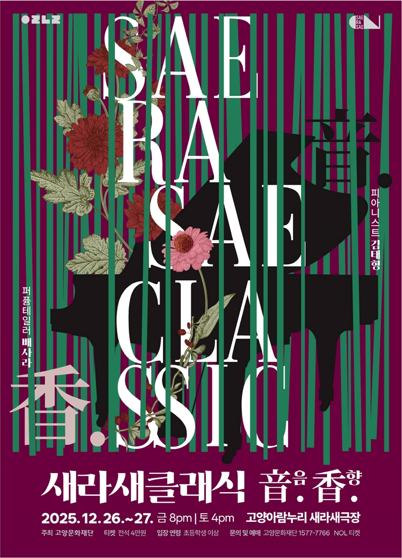 고양문화재단은 오는 12월 26일~27일 양일간 크리스마스 시즌을 맞아 음악과 향기를 결합한 공감각 클래식 공연 새라새 클래식 <音음. 香향>을 선보인다. 이번 공연은 피아노 연주와 향(香)이 함께 어우러지는 형식으로 관객에게 클래식 음악을 보다 새로운 방식으로 경험할 수 있는 시간을 제안한다.